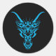 Pegatina negro con la cabeza de cuernos del dragón del estilo tribal azul del tatuaje.
