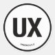 UX Pegatina, redondo/mate. Diseño negro sobre blanco.