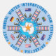 Pegatina conmemorando el primer Festival Internacional de Cine de Invierno en la Antártida. Las seis banderas representan a los seis países que entraron a las películas para el festival.