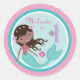Dulce sirena afroamericana nadando con pegatina de cumpleaños de peces.
