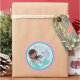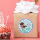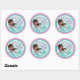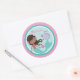 Dulce sirena afroamericana nadando con pegatina de cumpleaños de peces.
