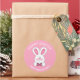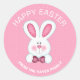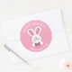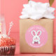 Pegatina de conejito lindo con un adorable conejo blanco con orejas de punto de polka. Personalizar con su mensaje especial. Ideal para cumpleaños y eventos de Pascua.