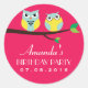 Redonda Personalizado de Lechuza Rosada Pegatina de cumple
