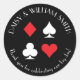 Los trajes de tarjetas rojas y blancas están rodeados de texto de personalizable que hace que estos pegatinas negros redondos sean perfectos para todo tipo de proyectos y ocasiones. Utilícelos para etiquetar los favores de los huéspedes bodas, para cerrar sobres y más.