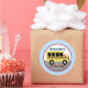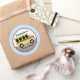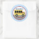 Diseño de autobuses escolares amarillos. Este lindo pegatina redondo se personaliza con sus propias 2 líneas de texto.