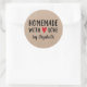 Un pegatina "casero con amor" personalizado de 3 pulgadas sobre un fondo color kraft. Hazlo tuyo añadiendo tu propio nombre. Un toque de bonito para todos tus regalos hechos a mano. Diseñado para ti por Blackberry Boulevard.
