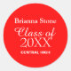 Verdadero pegatina de graduación rojo con texto óptico blanco. El nombre del graduado está escrito en la parte superior. La clase y el año de graduación están en el centro. La escuela secundaria está abajo. Este pegatina personalizado de graduación rojo y blanco está diseñado para ser fácil de personalizar.