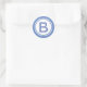Este pegatina monogramado puede utilizarse para un sello para sobres, una etiqueta de regalo de un personalizado o para otras ocasiones. Este pegatina personalizado tiene una inicial azul sobre un fondo blanco con un borde circular. La parte inicial en el centro se puede personalizar fácilmente a una letra de su elección.