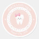 Decoración personalizada del fiesta de los dientes. Pegatina rosa de color rosa con un diente lindo, nombre editable y fecha hito. Visite la tienda para ver toda la colección First Tooth.