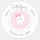 Decoración personalizada del fiesta de los dientes. Pegatina rosa de color rosa con un diente lindo, nombre editable y fecha hito. Visite la tienda para ver toda la colección First Tooth.