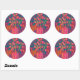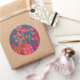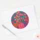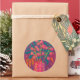 Pegatina con arte floral audaz, ramo otoñal, bayas fisalis, hojas verde esmeralda y naranja en jarrones rosas sobre fondo morado. © Julia Khoroshikh #floralart #abstractfloral #boldfloral #collage #papercollage #physalis #gooseberry #chineselanterns #collageart #contemporaryfloral #zazzle #zazzlemade #pegatinas