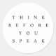 ¡Un pegatina de diseño simple y cautivador para recordarte a ti mismo (y a todos los que te rodean) a pensar antes de hablar!
