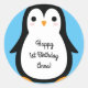 Redonda Pingüino Cute Invierno Primer Pegatina de Cumpleañ