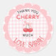 "Gracias a la cereza mucho" Favor de los Pegatinas 🍒 ¡Añada el toque final perfecto a sus favoritos de fiesta con estos adorables pegatinas con la temática del cerezo! Con un bonito fondo rosa de gingham, un alegre ilustracion de cerezo y un dulce mensaje personalizado, son una forma divertida y memorable de agradecerles a sus invitados.