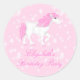 Redonda Pink Sparkle Unicorn Pegatina de cumpleaños