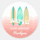 Redonda Pink Surfs Up Surfboard Birday Pegatina