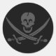 ¡Aarrr! Este es nuestro giro original de un Jolly Roger con espadas de culo; no lo encontrarás en ningún otro lugar si navegas por los siete mares, scallywags. El cráneo roto representa el pensamiento salvaje, libre pensamiento y los ojos lunares significa siempre buscar aventura. ¿No te gusta? ¡Camina por el cebo de pescado de la plancha!
