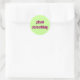 pegatina de círculo verde, texto rosado oscuro y púrpura: plantar algo
