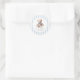 Un detalle encantador para los favores, sobres o decoración. Este pegatina presenta tiras de acuarela suaves, un oso de peluche vintage y un guión elegante — una manera dulce de unir el tema de la ducha de bebé.