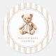 Un detalle encantador para los favores, sobres o decoración. Este pegatina presenta tiras de acuarela suaves, un oso de peluche vintage y un guión elegante — una manera dulce de unir el tema de la ducha de bebé.