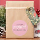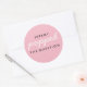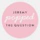 Poptó por la pregunta Popcorn Welcome Bag Pegatina en rosa, blanco y negro. Adherir este pegatina a una bolsa de palomitas recién hechas.