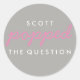 Poptó la pregunta Popcorn Welcome Bag Pegatina en rosa, blanco y gris. Adherir este pegatina a una bolsa de palomitas recién hechas.