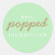 Poptó la pregunta Popcorn Welcome Bag Pegatina en Mint Green y Brown. Adherir este pegatina a una bolsa de palomitas recién hechas.