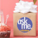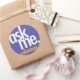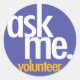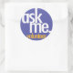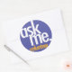 Redonda Pregúntame a mi pegatina voluntario púrpura