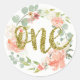 Redonda Primer cumpleaños Pegatina de guirnaldas florales