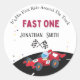 Redonda Primer Pegatina de coches de carreras de cumpleaño
