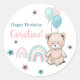 Redonda Primer Pegatina de cumpleaños con un lindo oso de