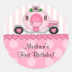 Redonda Princesa Rosa Feliz Pegatina de Cumpleaños