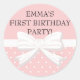 Redonda Punto de Polka Blanco y Rosa con Pegatina de cumpl