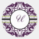 Redonda Purple Damask Letra inicial Pegatina U Boda
