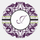 Redonda Purple Damask Pegatina inicial letra J Boda