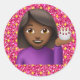 Pegatina de emoji chica purpurina Rosado para la fiesta de cumpleaños del chica