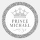 Redonda Purpurina de plata Príncipe Favor Pegatina Etique