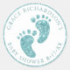 ¡Selle los favores de su bebé con estilo usando este pegatina turquesa de pies de bebé de aspecto purpurina! Con sus brillantes huellas falsas de purpurinas y textos personalizados dispuestos en forma circular, este pegatina moderno añade un toque encantador y personal a las bolsas fiestas, sobres, tarros y más. Los tonos verde azulados lo convierten en el lugar perfecto para duchas de niños o de género neutro, ofreciendo un estilo refinado y cohesivo para su celebración. Personalice el nombre del bebé y la fecha de la ducha para un dulce detalle final.