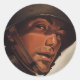 Esta es una imagen de un poster de propaganda de la Vieja Guerra Mundial que muestra a un soldador diciendo "¿Quién quiere saber? El Silencio Significa Seguridad".