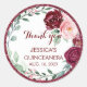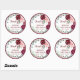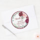 Un pegatina redondeado de Quinceanera con un diseño rojo burdeos, purpurina y florido