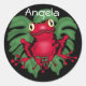 Redonda Rana Roja Sobre Hojas Verdes Pegatina Redondo