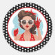 Un divertido y audaz chica de pinup retro sobre fondo de un punto de polka.