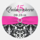 Redonda Rosa, Plata, Negro Damask Quinceanera Pegatina