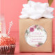 Pegatina redondeado de Quinceanera con un diseño de oro, purpurina y florido subió. Este pegatina redondo puede ser personalizado con su información.
