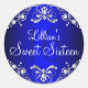 Redonda Royal Blue Silver Pearl Damask Sweet 16 Pegatina