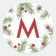 Los saludos de Evergreen monogramados pegatina redonda. ¡Personalizable. Parte de una colección de Navidades.