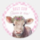 Redonda Santo Vaca Soy un Pegatina Fiesta de Gingham Rosa
