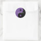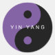 Selladores pegatinas personalizados con símbolo de Yin Púrpura. Personaliza tu propio texto opcionalmente. El color personalizado yin y yang se miden con la tipografía moderna. Icono de la filosofía redonda china para el equilibrio y la armonía.