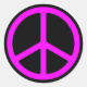 Un pegatina con una señal de paz delgada y rosa sobre un fondo negro. Cambia los colores de fondo, elige fuentes y agrega tu mensaje.