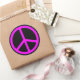 Redonda Signo de paz rosada en Pegatina redondo negro